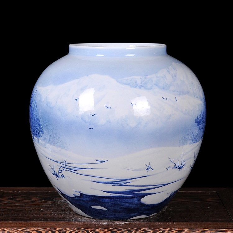 【品名】:黄志勇大师手绘青花瓷花瓶花插寒江雪