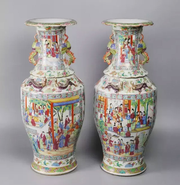 广彩瓷器总体的特点是构图紧密、色彩浓艳、金碧辉煌,绘画方式是西方风格的艺术特点。